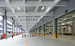 - 3.効率的な保管と作業を可能にする広大な倉庫スペース(概ね1フロア5,000㎡超)、十分な床荷重(概ね1.5トン/㎡以上)、有効天井高(概ね5.5m以上)、柱間隔(概ね10m以上)が確保されている