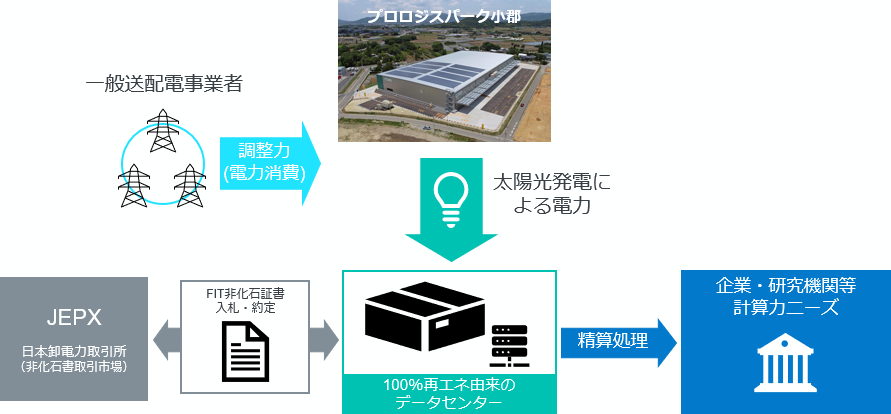 プロロジスパーク小郡(福岡県小郡市)は、2025年4月より、同施設の屋根面に設置した太陽光発電設備から、データセンター内のサーバーへ直接給電を行っています。